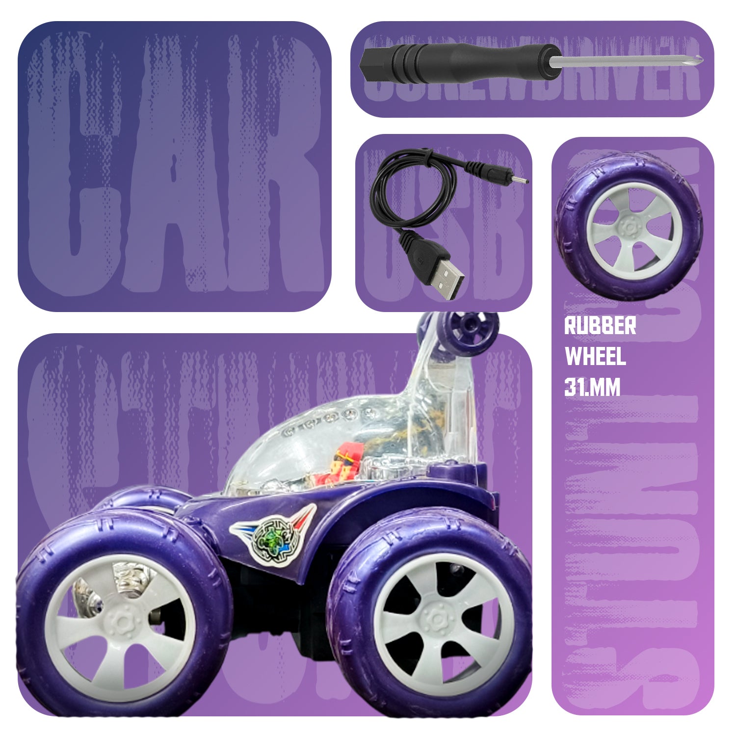 Fancy 360° Rotating RC Stunt Car for Kids | Rechargeable High-Speed Remote Control Car – Purple