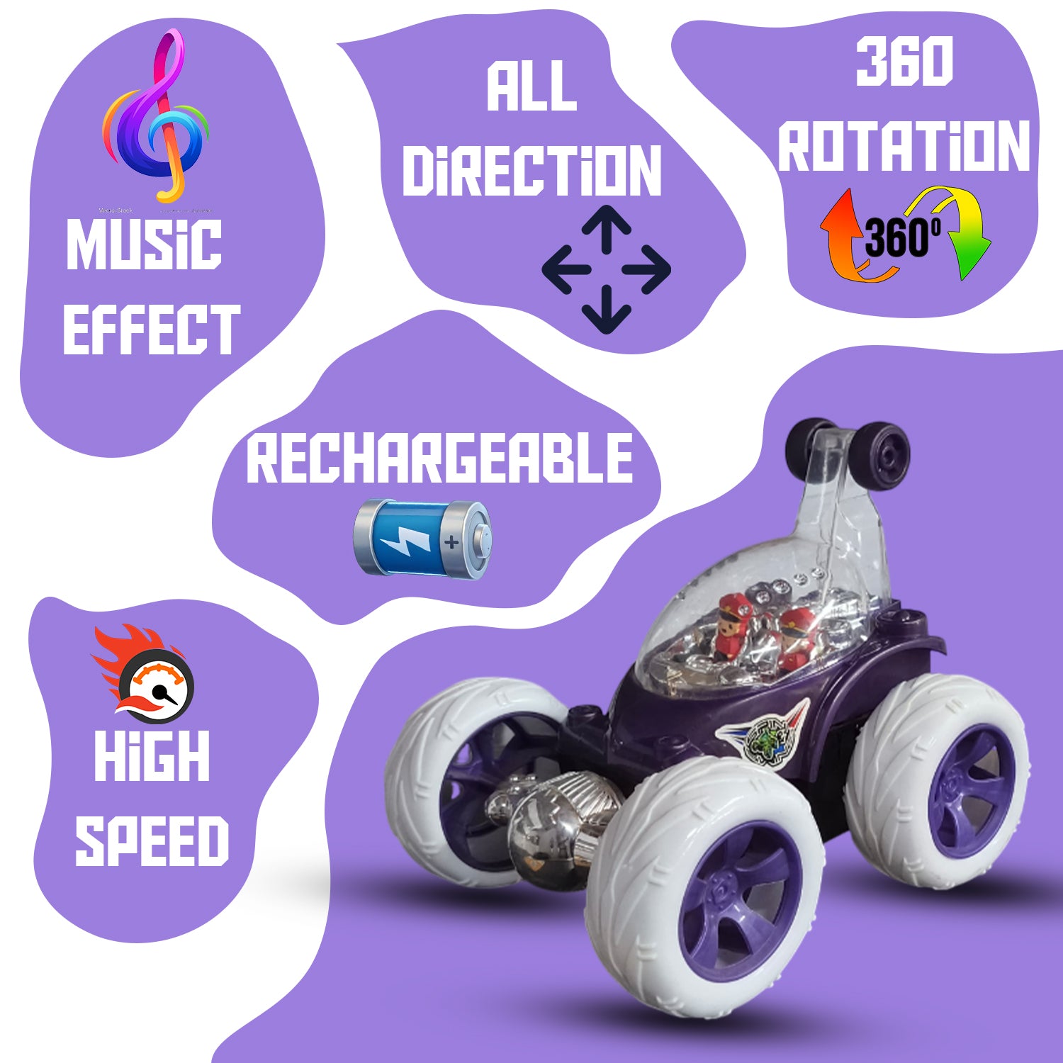 Foggy 360° Rotating RC Stunt Car for Kids | Rechargeable High-Speed Remote Control Car – Purple