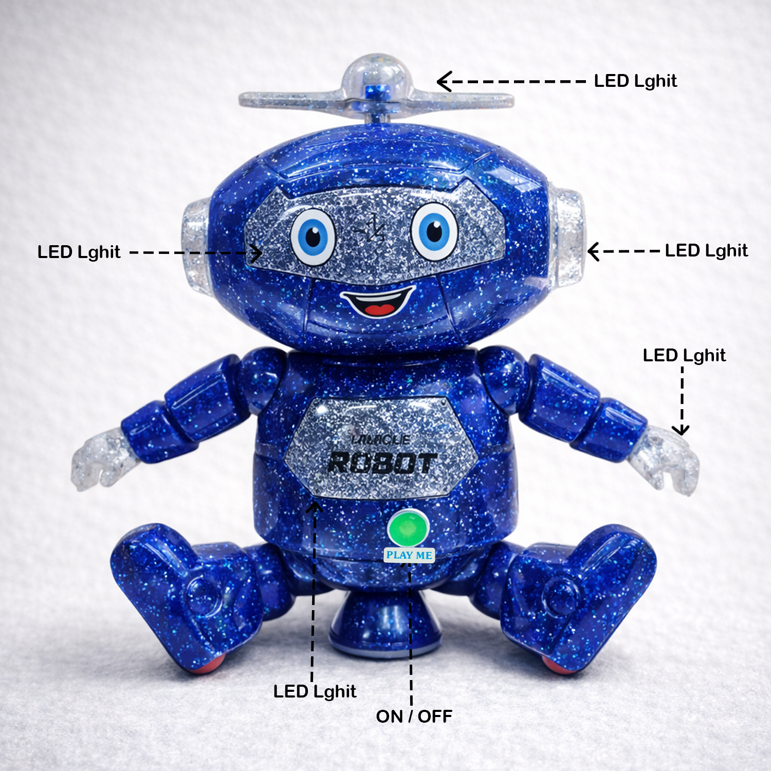 Mimique Dancing Robot Musical Toy With LED Lights & Spinning Propeller Rechargeable, 70+Different Music, Voice Recording 99444-2