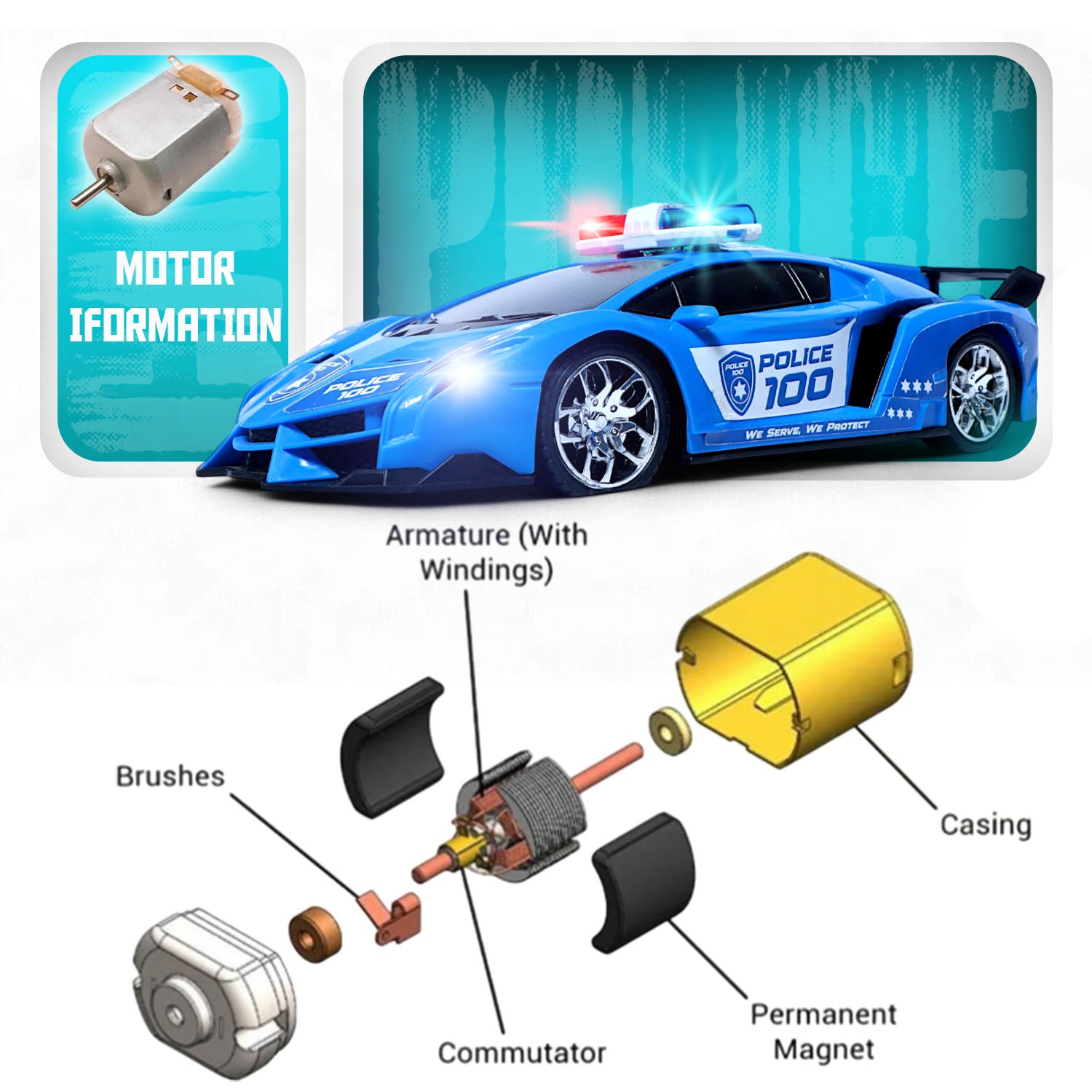 A built-in speaker produces smooth police sound effects, adding excitement to every drive. The 500mAh rechargeable battery ensures longer play sessions, while the stable car PCB and responsive remote PCB provide easy handling within a 10–15 meter range.