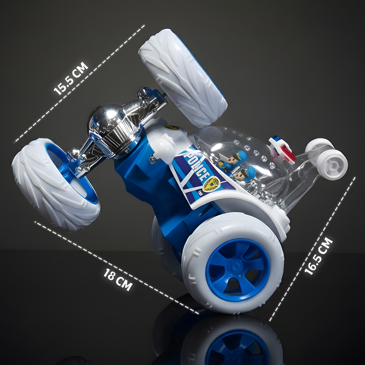 The ergonomic remote controller makes it easy for kids to drive, turn, and enjoy non-stop action play. With eye-catching LED lights and a fun police design, this toy instantly grabs attention and keeps children engaged for hours.